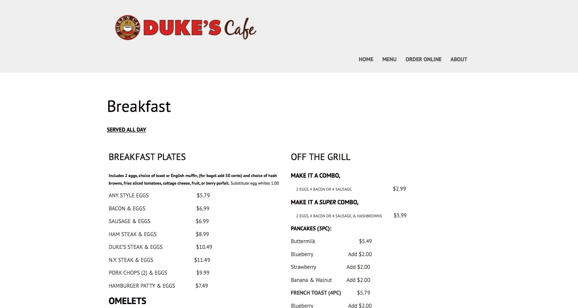 Duke’s Cafe is now able to provide it’s customers with easy to access information regarding their restaurant location, menu, and hours.